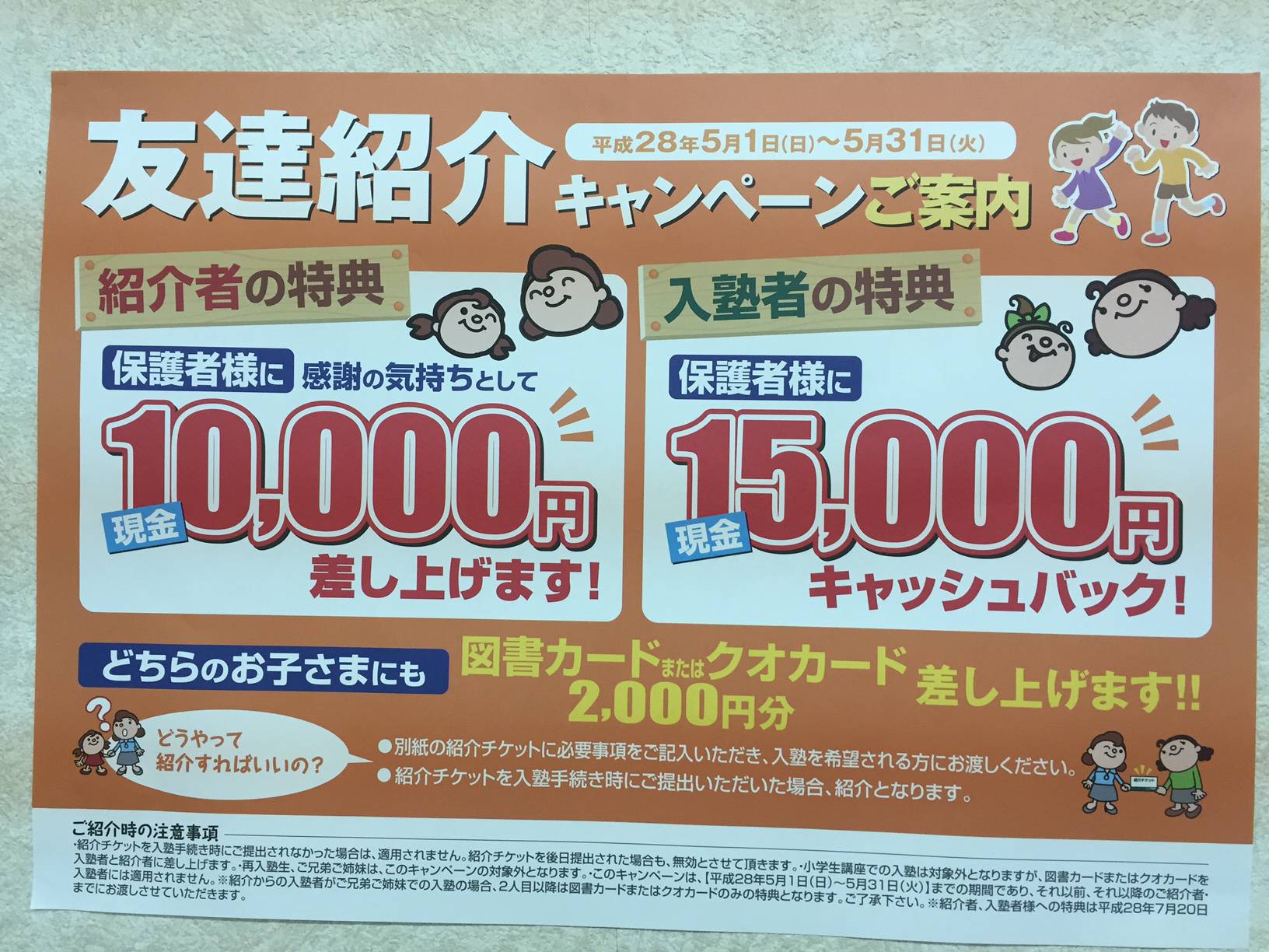 5月より、恒例の友達紹介キャンペーンがおこなわれます。