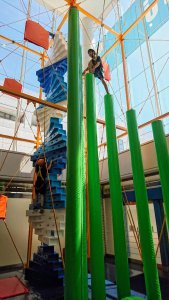息子の希望もあってアスレチックとボルタリングの中間みたいな室内施設へ。