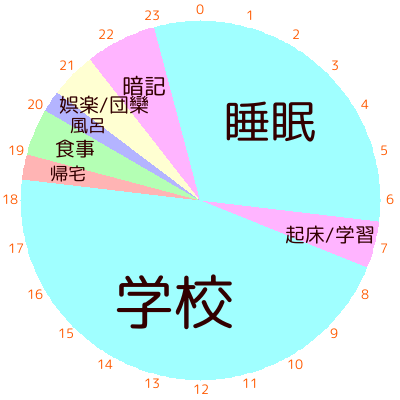 まず学生の一般的な生活リズムは大まかに以下の円グラフのようになるのではないかと思います。