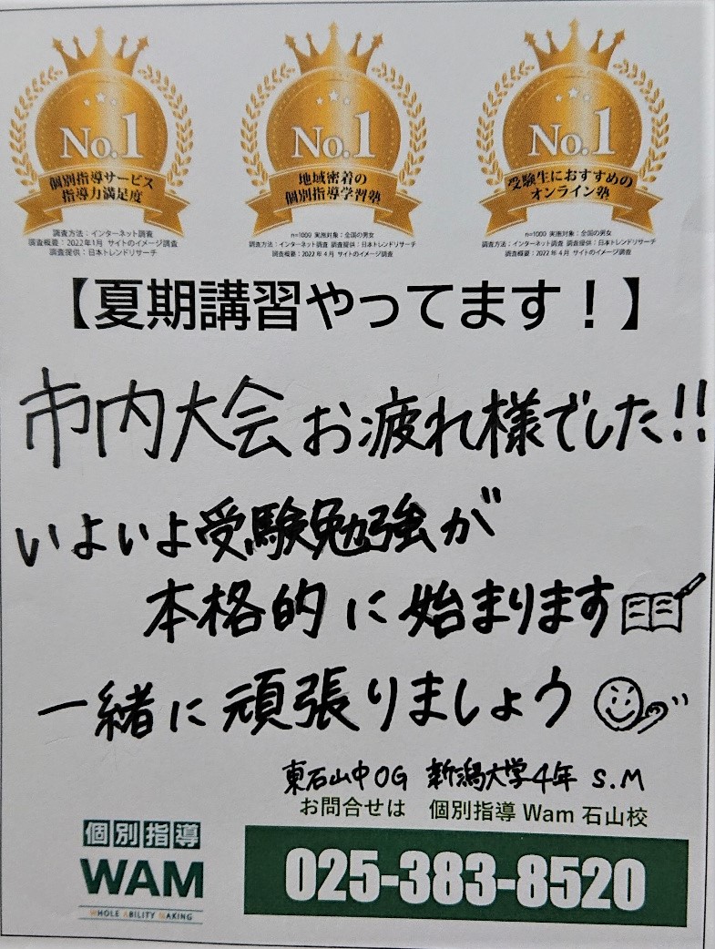 石山校に来てもらえれば、まず冷房もきちんと効いている中で、