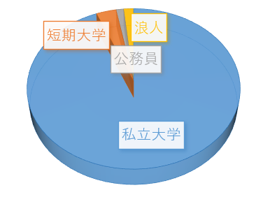 短期大学希望の生徒さんは3%前後で15人、公務員就職は1.3%前後で5人程度です。