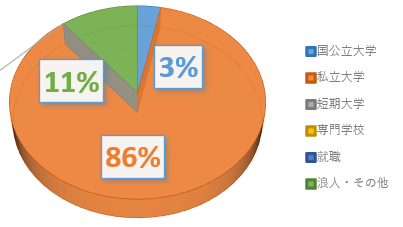 約11%(39名前後)の生徒さんが浪人・その他となります。