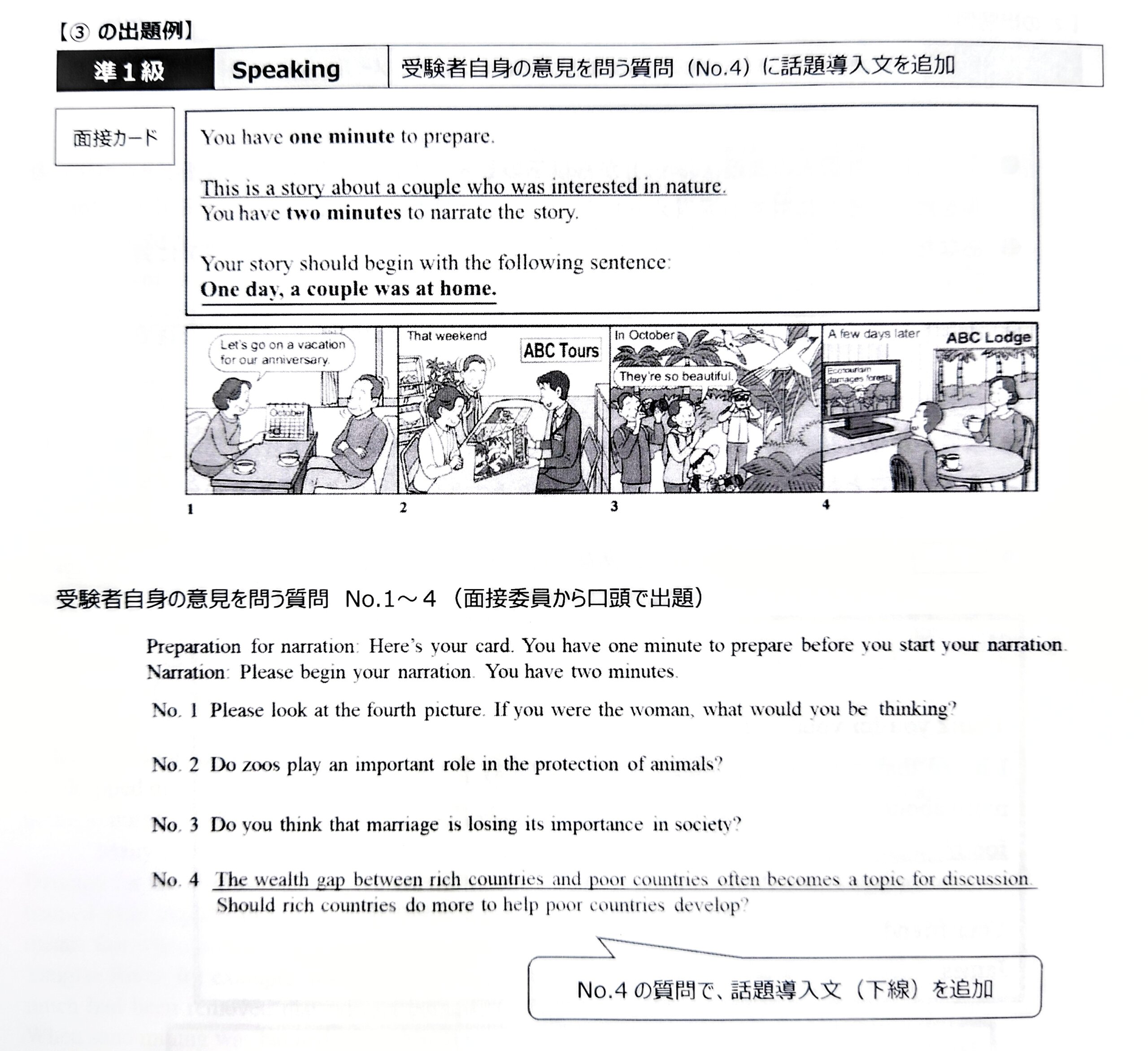・2次試験で受験者の意見を問う問題の最後の質問(No4)に話題導入文を追加。