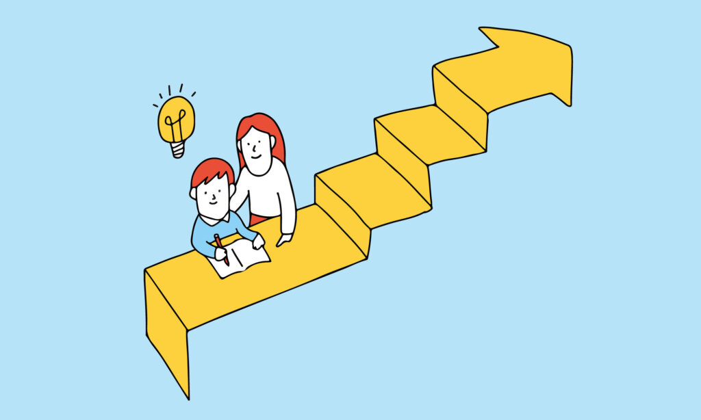 これは私たちの塾では小学生から授業で取り入れている基本的な指導法ですが“家庭”でも伴走者が居れば案外できるもんです。