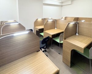 周りを気にせず勉強に取り組める個別ブースを完備。自分だけの空間で、授業も自習も集中して取り組めます。