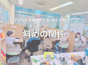 縦や横だけではなく、子どもにとって「斜めの関係」があることが、安心や成長の大きな支えになります。