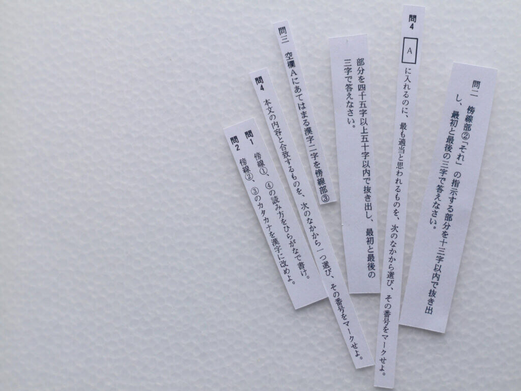 記述問題なら「自分の考えを書くのか、本文の内容をまとめるのか」、選択問題なら「正解を選ぶのか、間違いを選ぶのか」を確認する。