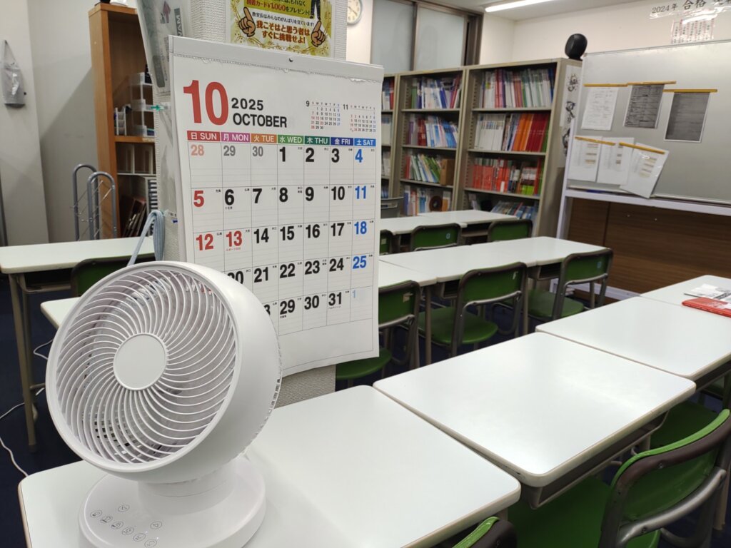 ・各教室に2台のサーキュレーターを設置し、空気を循環させ、心地よい空間を作り上げています。