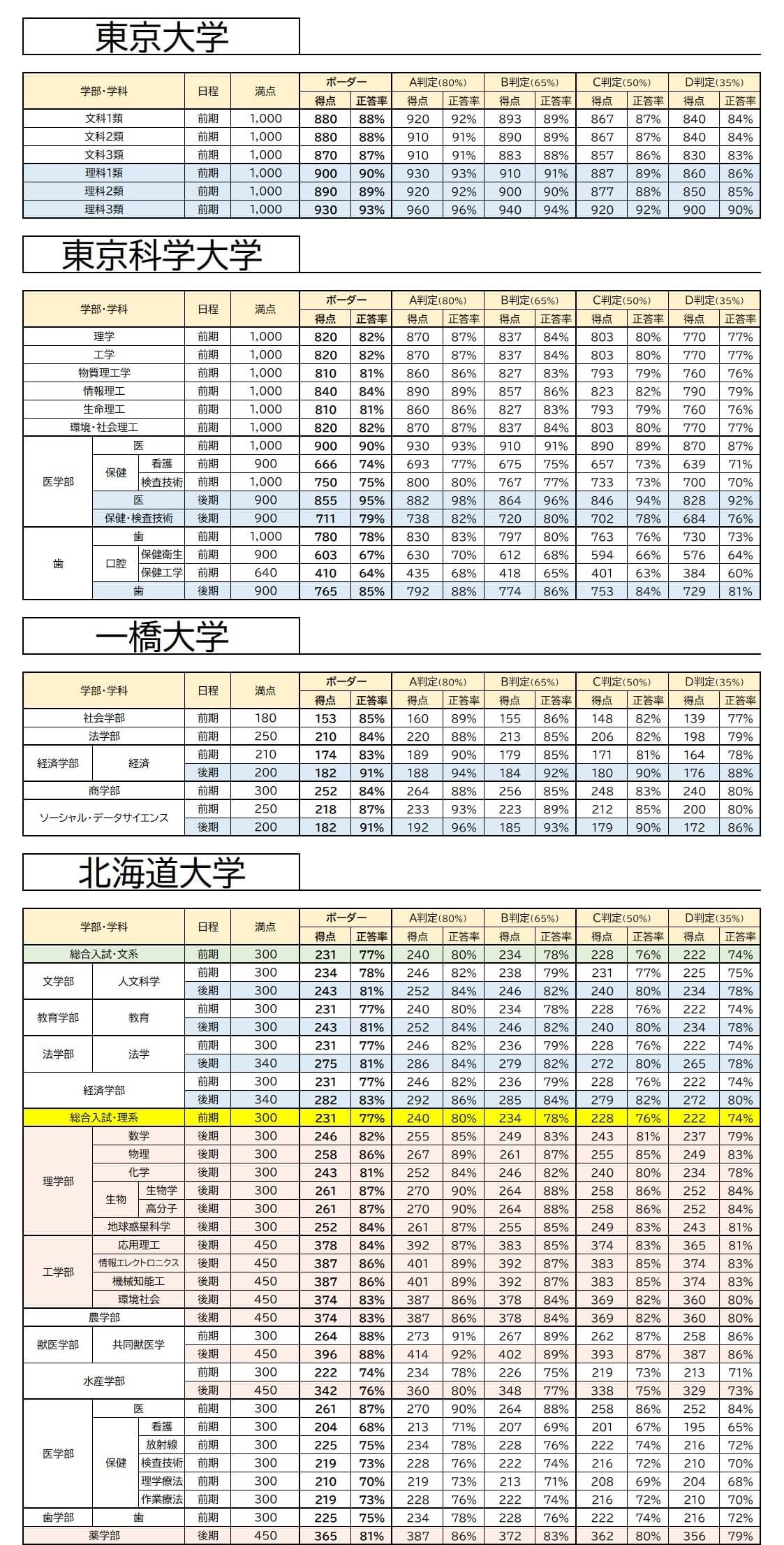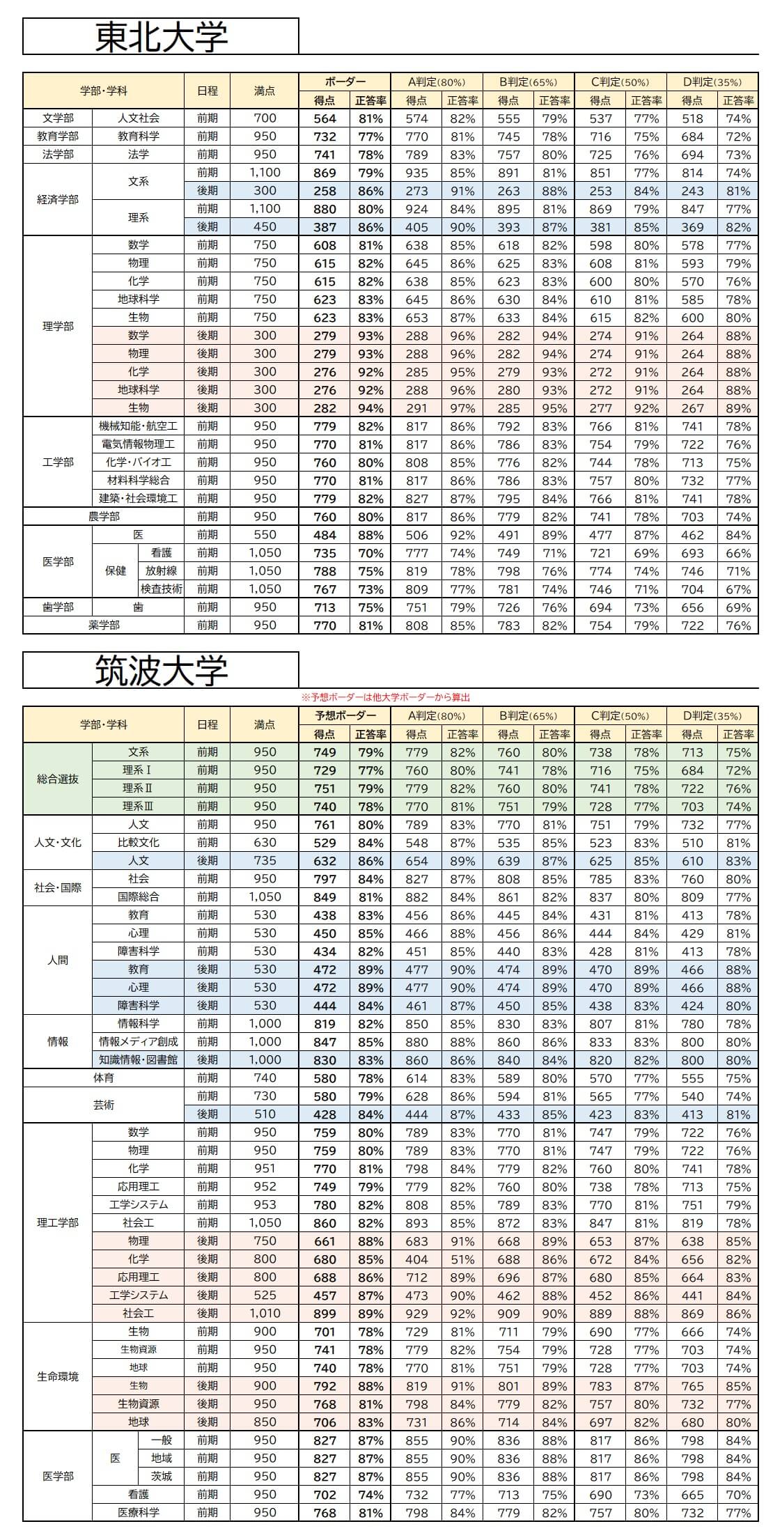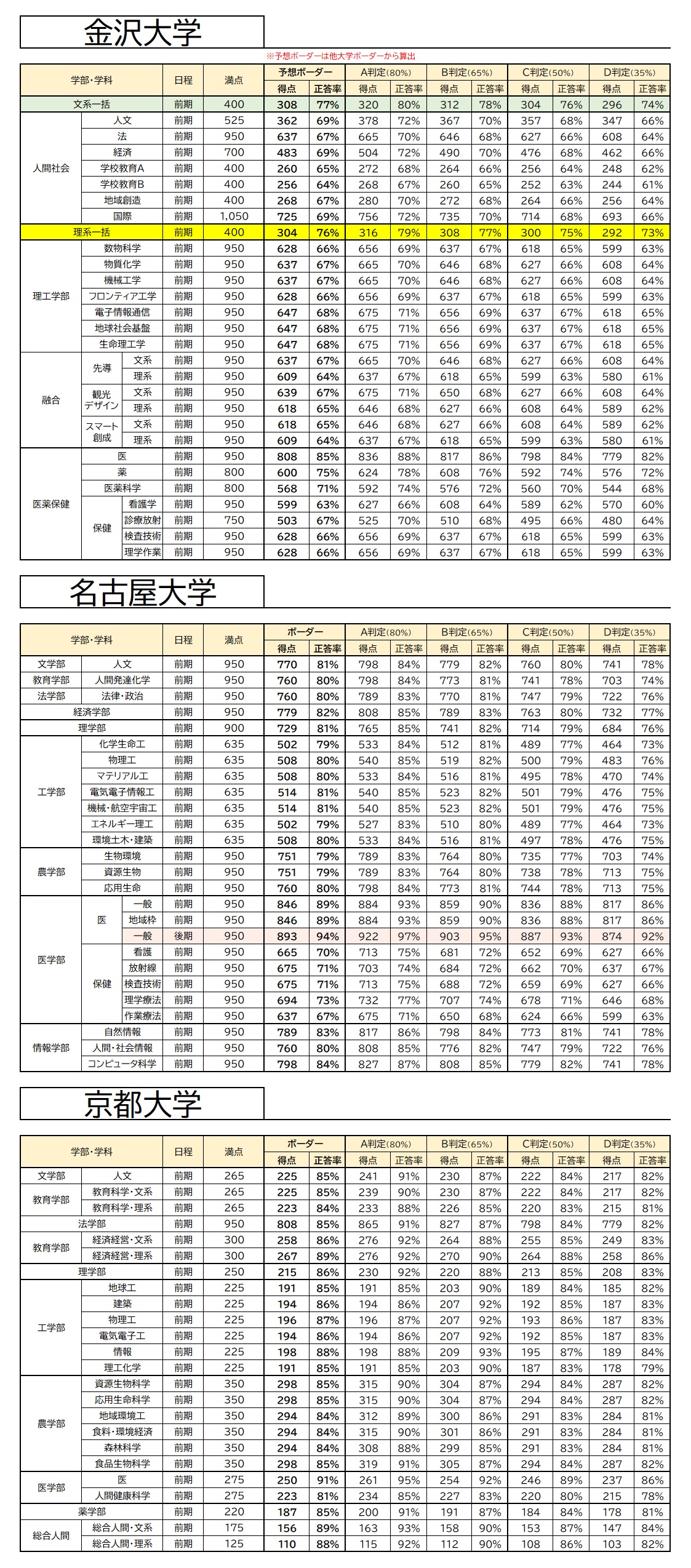 ※筑波大・金沢大は参照サイトにてボーダーが表記されていなかったため