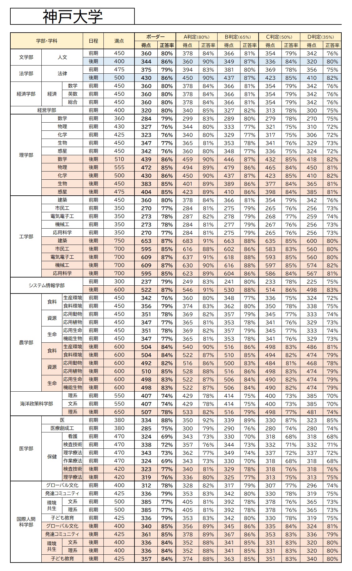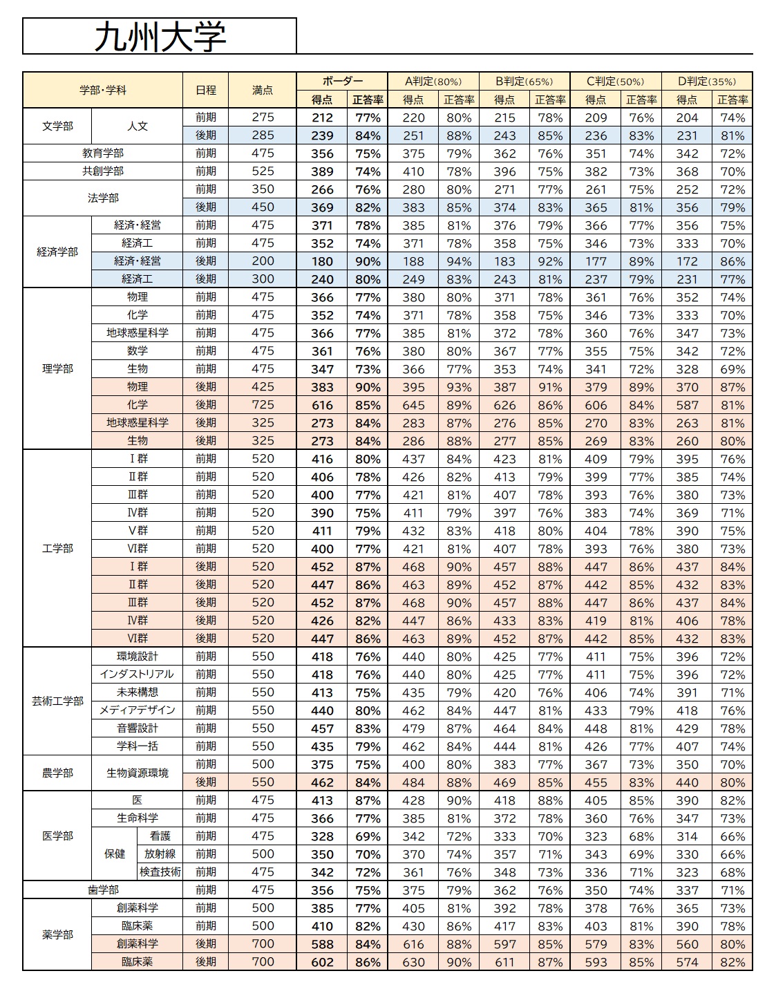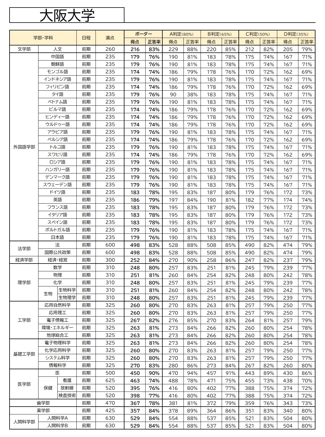 ※筑波大・金沢大は参照サイトにてボーダーが表記されていなかったため