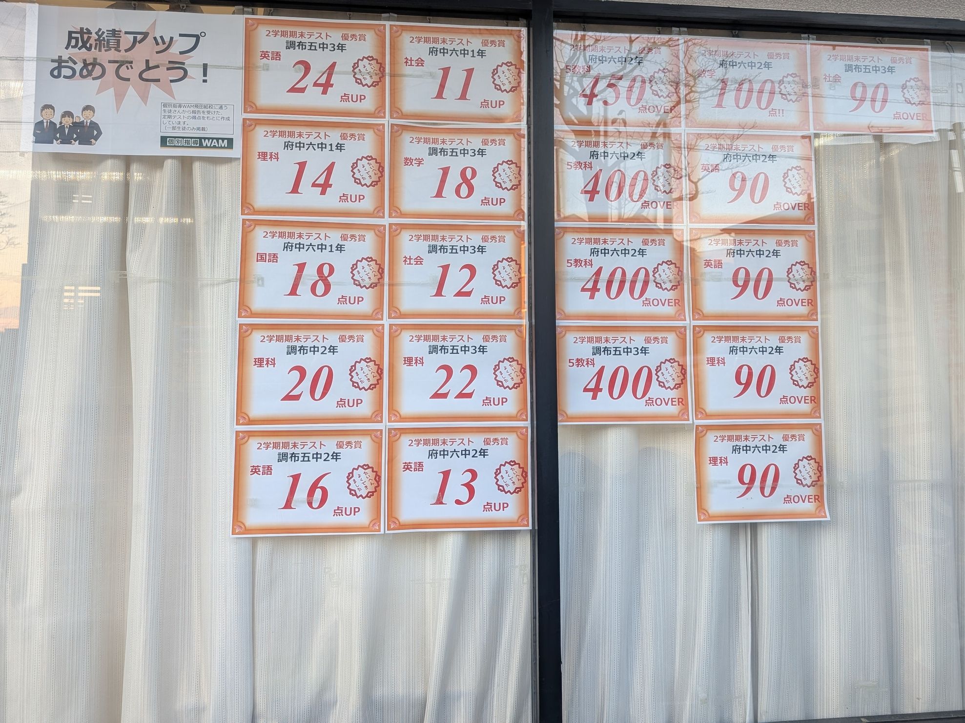 大変遅くなりましたが、府中六中、調布五中、調布中の2学期期末テストの結果が出そろいました。