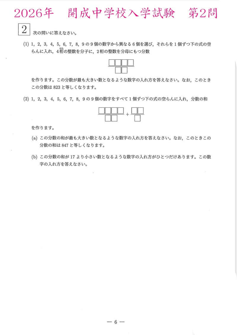 この学校は気づきや数学的勘に傾倒した出題形式となっています。
