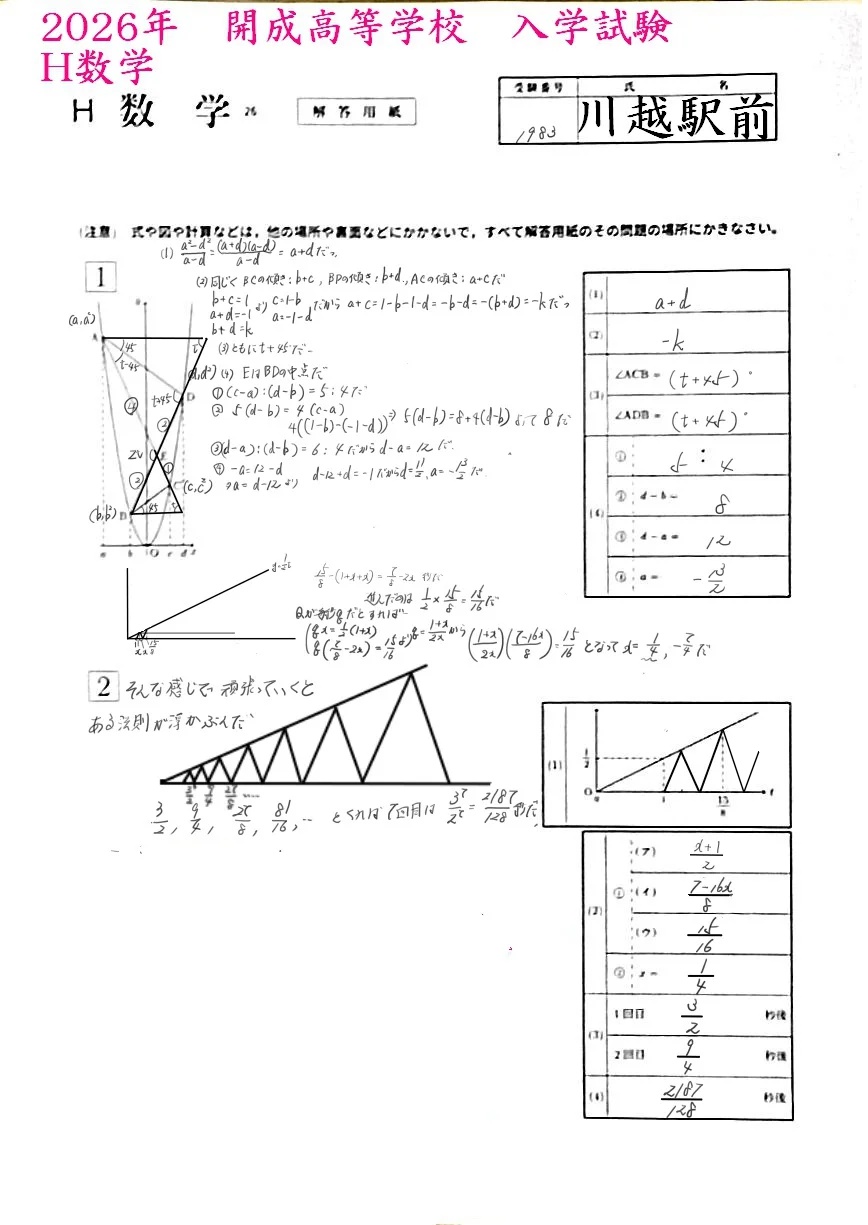 出題分野こそ偏りましたが、正確な数え上げやセンスを要する場合の数や確率の重い例年に比べれば実力が反映された試験です。