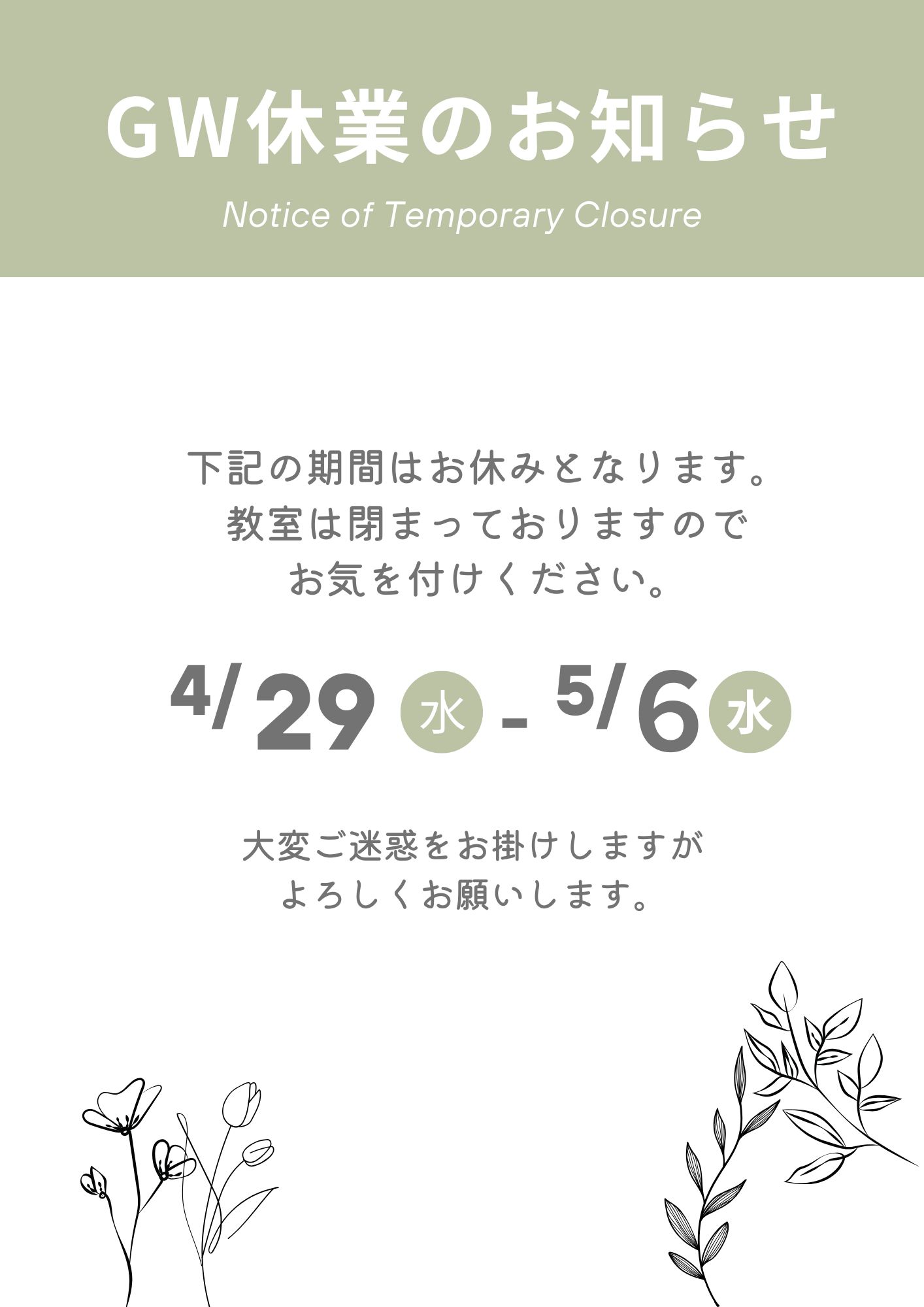 【休校日】GW休暇について