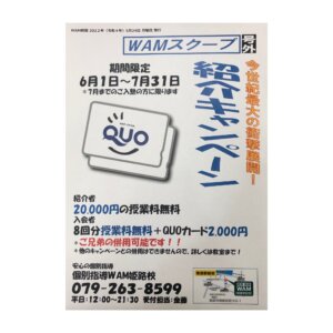WAM姫路駅前校です。 先日、お盆明けの授業が再開しました。 皆さん、お休み期間はゆっくり過ごせましたか? これからまた切り替えて頑張っていきましょう!! まだまだ暑い日が続いていますので体調には気を付けてくださいね。 夏休みも終盤戦。 夏期講習・課題ともにしっかり取り組んでください。 この夏やりきった方は2学期以降成績が伸びていきます。 もうすぐ学校も始まります。 少しずつ生活リズムを学校仕様に戻