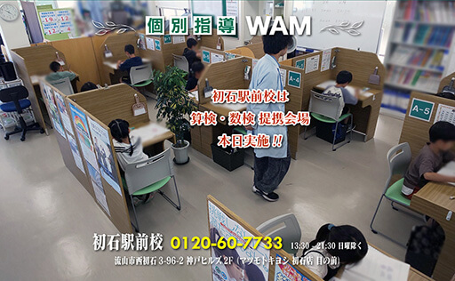個別指導Wam松飛台校では、秋入塾生を募集しています。 🌰個別指導(小1~浪人生)🌰 【体験授業】1回無料 【チーパス】提示で体験授業さらにもう1回無料 【入塾特典】1か月分無料 最大6コマ分が無料! 🌰予備校コース(高校生~浪人生)🌰 塾生登録料無料! 🌰プログラミング(小2~)🌰 【体験授業】1回無料 【入塾特典】1か月分無料 最大5回分が無料! 各コースについては、こちらをご覧ください 【個別指