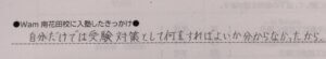 みなさん、こんにちは!個別指導WAM堺市駅前校です。今日は塾内模試を行いました。全員が真剣な表情で模試に取り組んでいた姿がとても印象的でした。模試当日、教室内は緊張感に包まれていました。皆さんが自分の机に向かい、問題に取り組む姿勢は本当に素晴らしかったです。その一生懸命な態度は、学ぶことへの真摯な姿勢を表しているようで、教室長はとても感銘を受けました!! お疲れ様でした! 模試は集中力を試す大切な場です。緊張や努力の中で疲れることもあるでしょうが、皆さんの取り組みは必ずしも結果だけで評価されるものではありません。模試のスコアよりも重要なのは、この経験を通じて得た知識やスキル、そして自己成長です