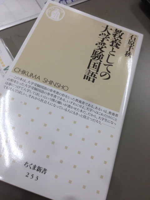 こんにちは、個別指導Wam加島校、木村です。 今日はいい天気でしたね。近くの加島小学校は、今日運動会でした。テスト対策授業があったので少ししかみれませんでしたが覗きにいきましたよ◎秋空の下で元気に子供たちが走っていました。 さて、今日のブログは、僕が愛読する本の紹介です。タイトルは、『教養としての大学受験国語』著者は、早稲田大学教授の石原千秋さん。 大学入試で使用された論説文の問題を紹介し、その問題の出題者の意図は何なのか?、現代思想(哲学、歴史、宗教学、心理学、社会学などなど・・・)の観点から読み取っていく本です。 わかりやすい言葉で(といっても中学生にはちょっと難しいかな・・・)書かれてい