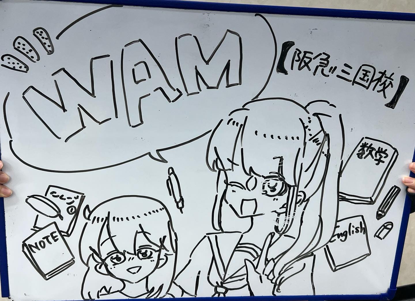 こんにちは! 個別指導WAM阪急三国校の池田です。 最近急に熱くなりましたが、体調を崩されたりしていませんか? 阪急三国校でも、体調不良でのお休みがちらほらありました。 中学生の皆さんは期末テストも近づいているのでしっかり体調管理をしていきましょう! そして、この度投稿が止まっていたInstagramとTwitterを再開しました! 中には投稿のため、ホワイトボードに絵を書いてくれた生徒がいます。 生徒の絵や、阪急三国校での日常、お知らせなど様々な情報を投稿していきますのでぜひフォローして下さい