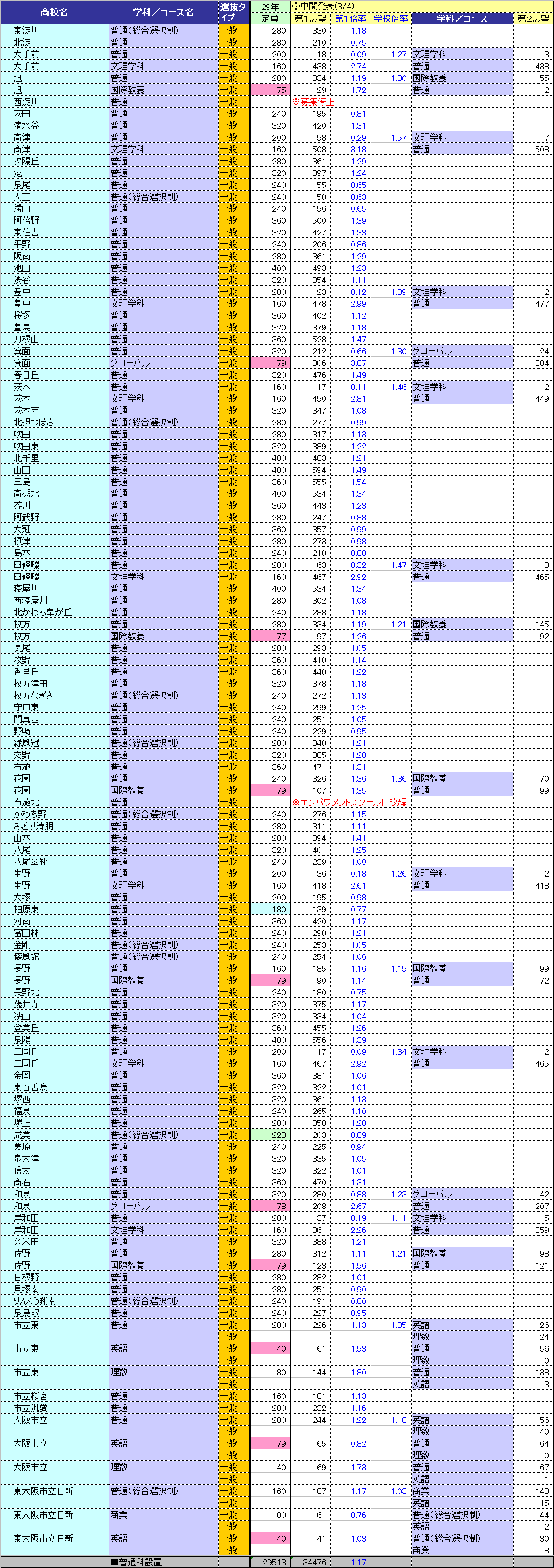 みなさん、こんにちは!楠根校 教室長の野村です。 学年末テストも終わり(一部私立は残っていますが…)、今年度も残すテストは公立一般入試だけとなりました。 昨日・今日と毎年恒例の「一般入試予想テスト」を実施しています。いまも、受験生がテストを受けていて、いつもはにぎやかな楠根校が入試独特のピリッとした空気に包まれています。 さて、昨日一般入試の出願状況(中間発表)が公表されました。 現在、全日制の総募集定員42,241人(前年比1,234人減)に対し、47,768人(前年同期321人減)が出願しています。 昨年同様、普通科を併設している文理…