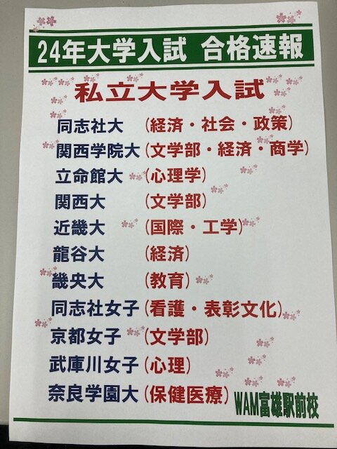 こんにちは、個別指導WAM富雄駅前校です。 個別指導WAMでは、転塾キャンペーンで、お得な特典があります。 特典:90分の個別指導が2回無料!! ぜひこの機会に 「成績アップのために頑張りたい人」を応援します。 富雄駅前校にぜひお越しください! お問い合わせは、080-7567-5123まで