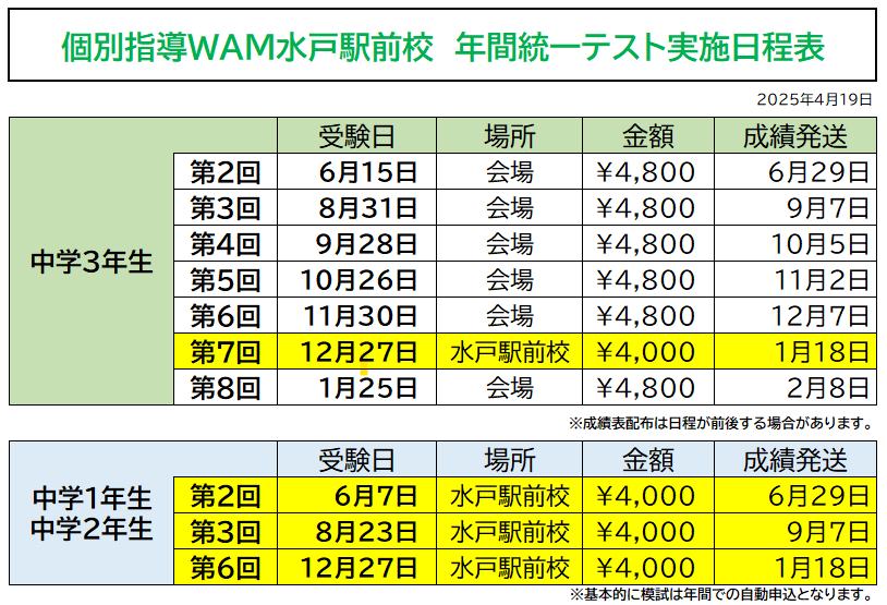 🚀 朗報!英検受験は個別指導WAMにお任せ! 1月24日(土)英検準会場受験のご案内(5級〜2級)※準2級プラスは開催されません 個別指導WAM刑部校の生徒の皆さん、保護者の皆様、こんにちは! 今年も英検の目標級合格に向けて、一緒に頑張りましょう! この度、個別指導WAMの太田校が、英検の準会場として認定されました! 刑部校の生徒さん・英検にご興味のある外部生も、いつもの塾の環境に近い、馴染みのある「WAM」の教室で、リラックスして本番の試験に臨めます。 外部会場での受験に不安を感じる方、初めて受験する方、ぜひこの機会をご活用ください。 試験日: 令和7年1月24日(土) …