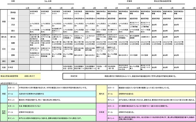 現状の学力、今までどんな勉強をしてきたか…それらは生徒さんごとに違うため、同じ中学を目指す生徒でも合格カリキュラムは生徒ごとに変わります。