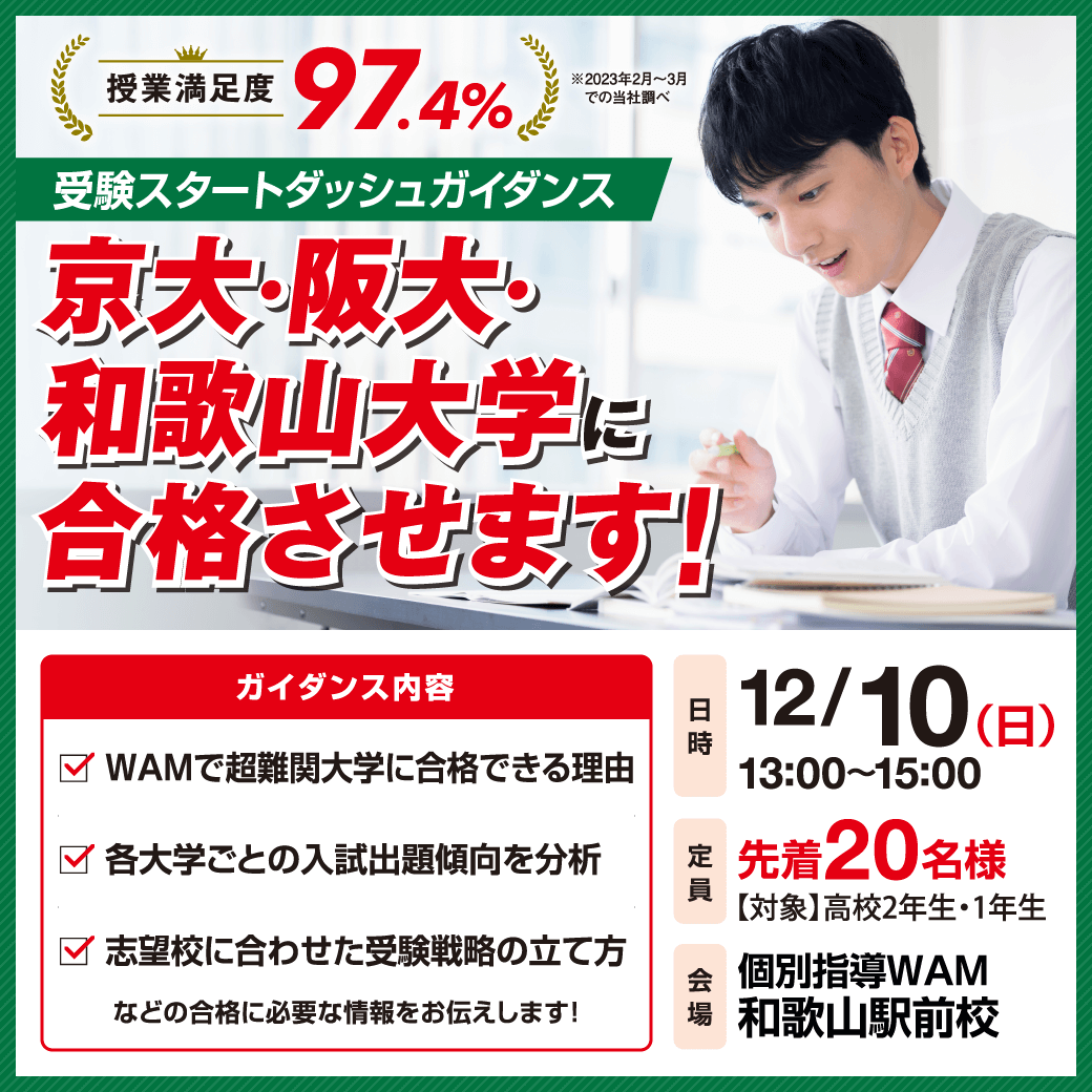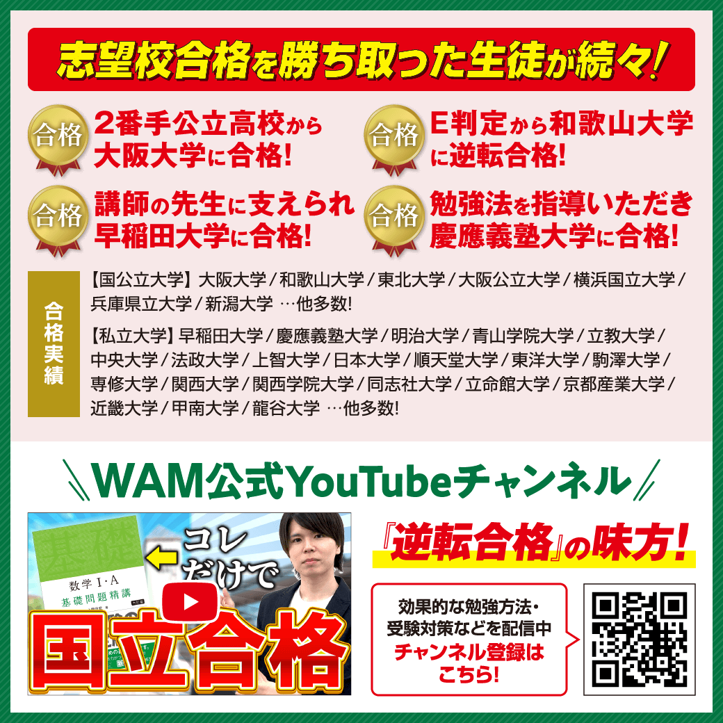 個別指導WAMより、高校1~2年生の皆様への重要なお知らせです。
