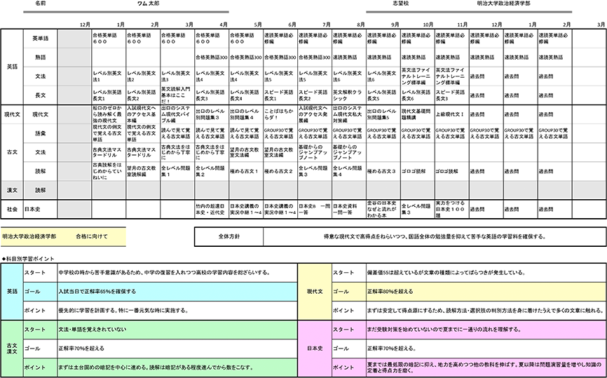 個別指導塾WAMではその地区の公立高校入試の出題傾向・生徒の現状の力・残り期間、それらから逆算で「生徒用カリキュラム」を作成。