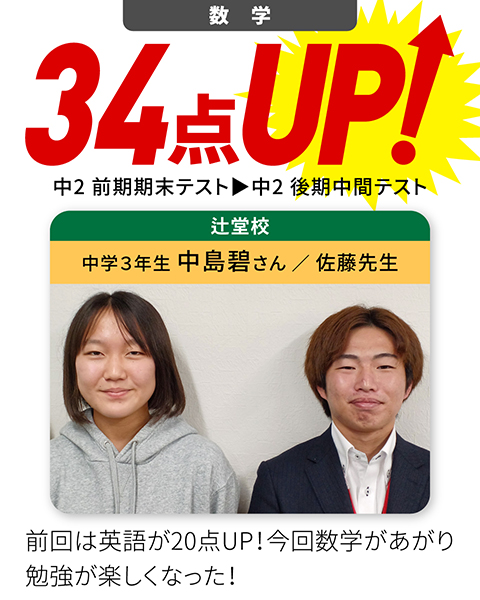 - 苦手科目が、35点から90点に上がった!