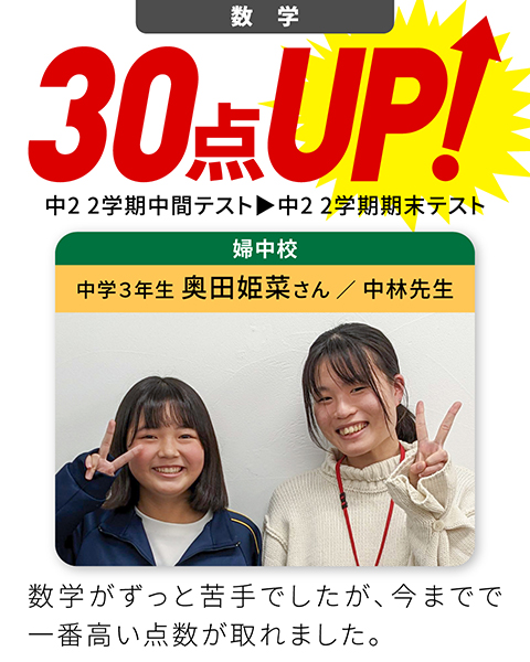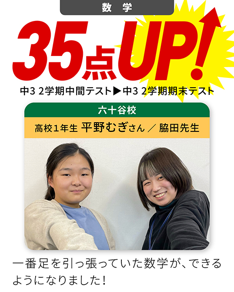 • 苦手科目が、35点から90点に上がった!