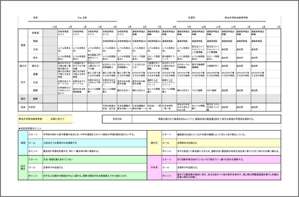 対策プラン - 志望校別