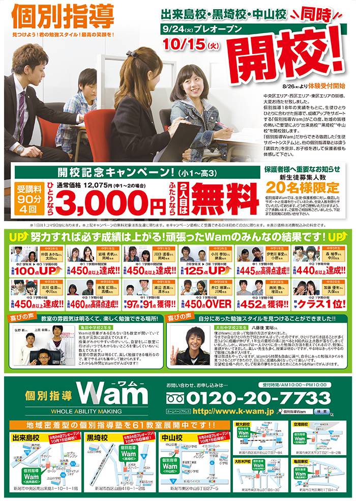 出来島校・黒埼校・中山校 2013年9月24日(火)同時プレオープン