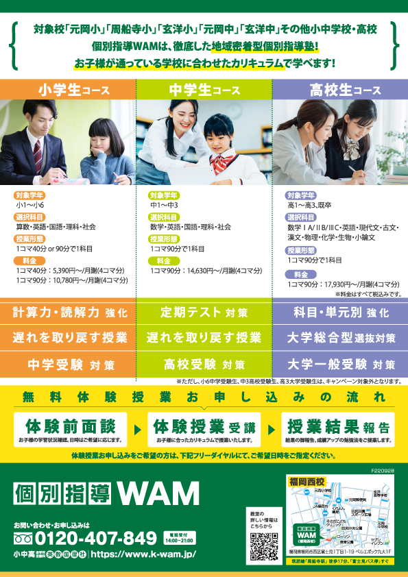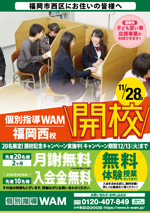 福岡西校|豊中桜塚校|糸島校|筑紫野ベレッサ校|並河校|東大宮校|武雄温泉校|南上原校|東大和校| 粟生外院校|代官山校|山形南館校|