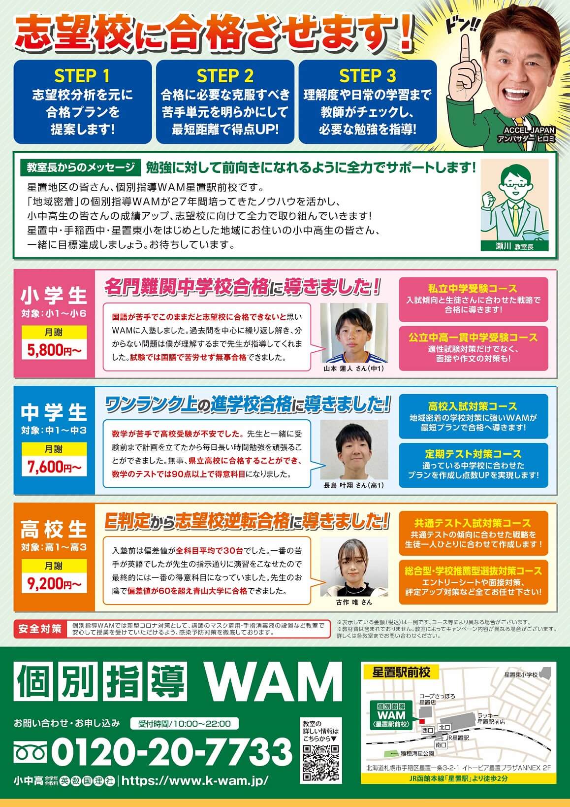星置駅前校|小樽駅前校|白石駅前校|明和校|海南校|上牧校|玉川学園駅前校|新潟駅前校|三木校|砺波栄町校|博多吉塚校|南浦和辻校|