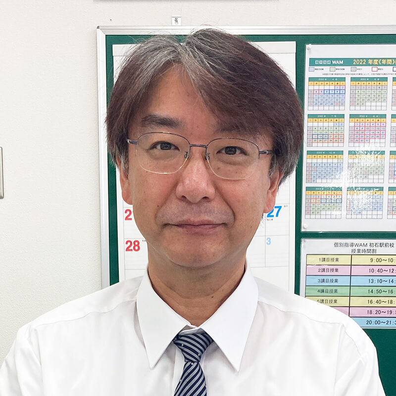 私は、これまで学習塾はじめとした教育事業に約30年間携わってきました。それは、人を育てる教育こそが社会の発展には最も大切であり、一番貢献できることだと考えてきたからです。この初石駅前校も開校3年目になり、地元の小・中学校の生徒さんはもとより高校生も通ってきています。特に地元の中学校の定期テスト対策を得意にしています。当塾は、生徒さんひとりひとりの状況に合わせた「オ-ダ-メイドカリキュラム」を組んで個別指導で授業を行います。また、成績を上げるには学習習慣をつけることも重要です。それには、「全科目に対応したAI教材」を併用して効率の良い自習時間の確保をします。この流山市、近隣の皆様に、「あの塾なら安心して任せられる」と信用される学習塾にしたいと思います。どうぞよろしくお願い致します。