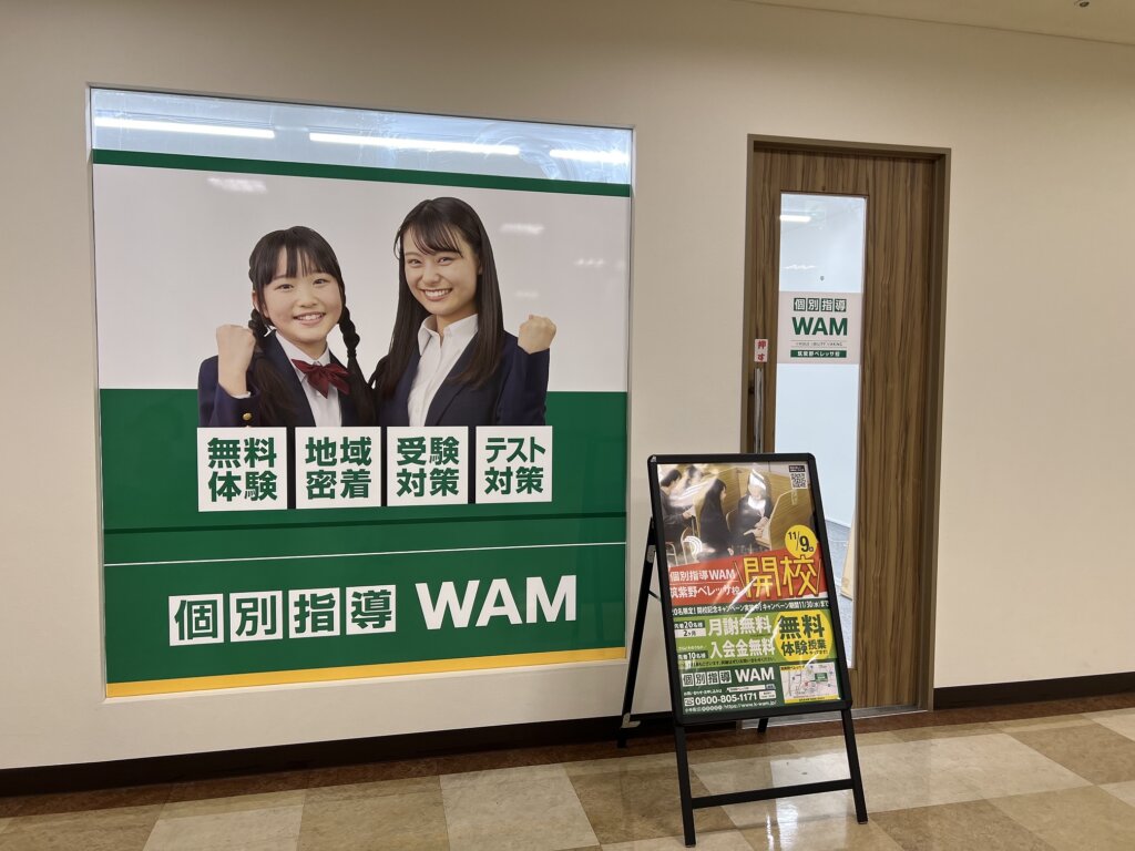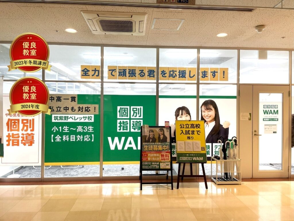 個別指導WAM 筑紫野ベレッサ校は筑紫野ベレッサ3階にある自習室完備の完全個別指導塾です。