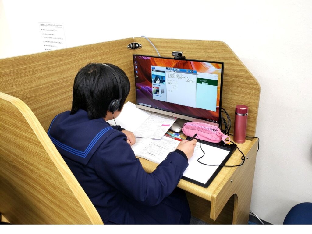 授業環境 ブース内で集中して勉強することができます。すぐそばに先生がいるので、わからないことがあれば都度質問することができます。