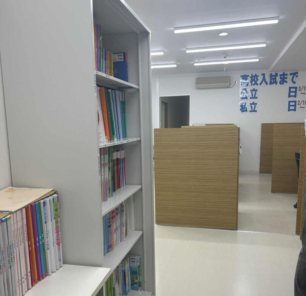 いつでも使える自習室はとても充実しており、先生への質問もOK、また必要なテキストも貸出可能