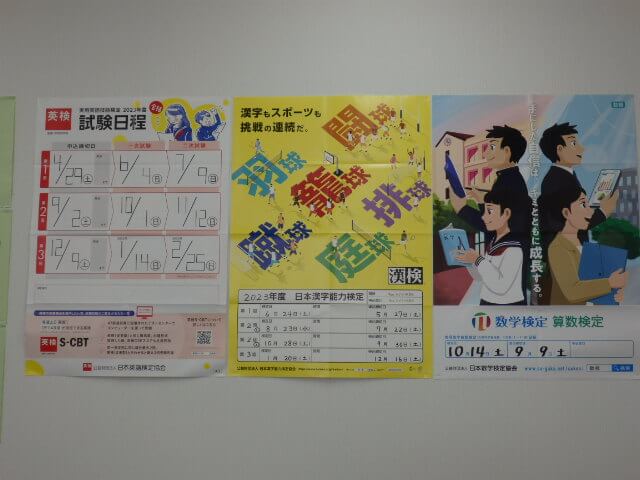 英検、漢検、数検、茨城統一テストがみどりの駅前校で受験でき、必要な場合は対策授業も行います。