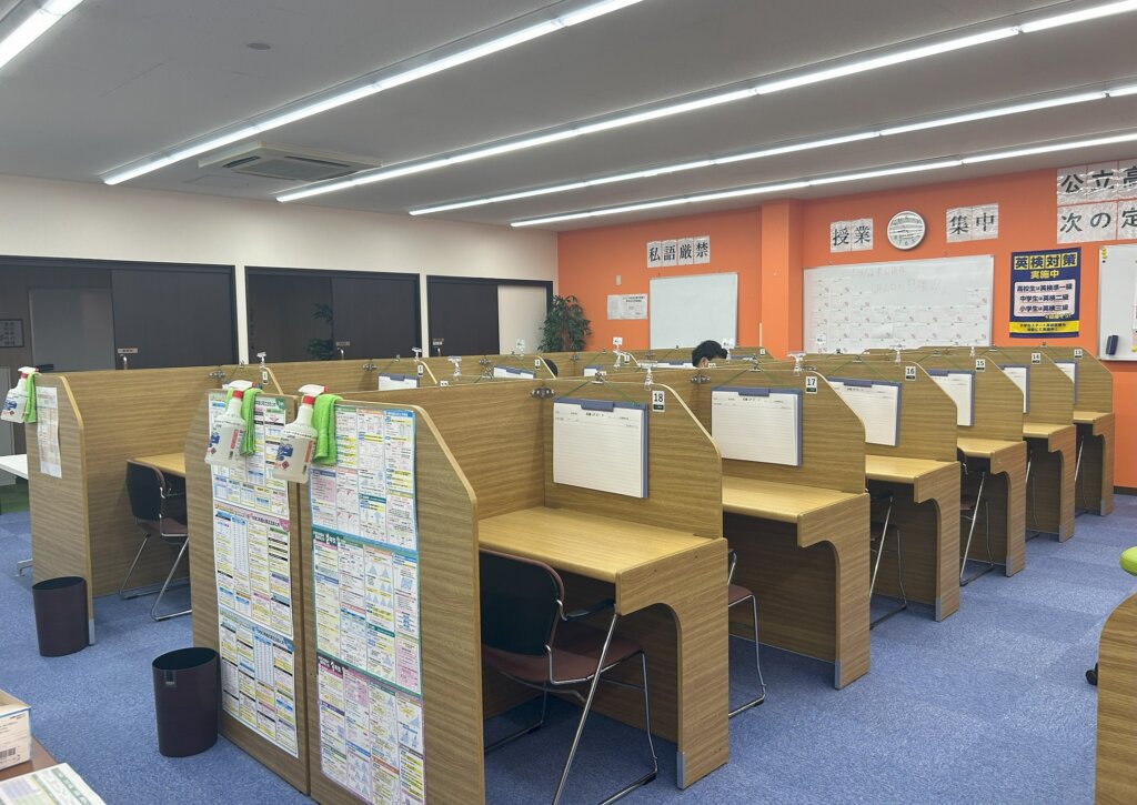 東山崎校では、教室開放時間内であればいつでも無料で自習スペースを開放しております。空き状況は日によって異なりますので、詳しくはお電話でお問い合わせください。