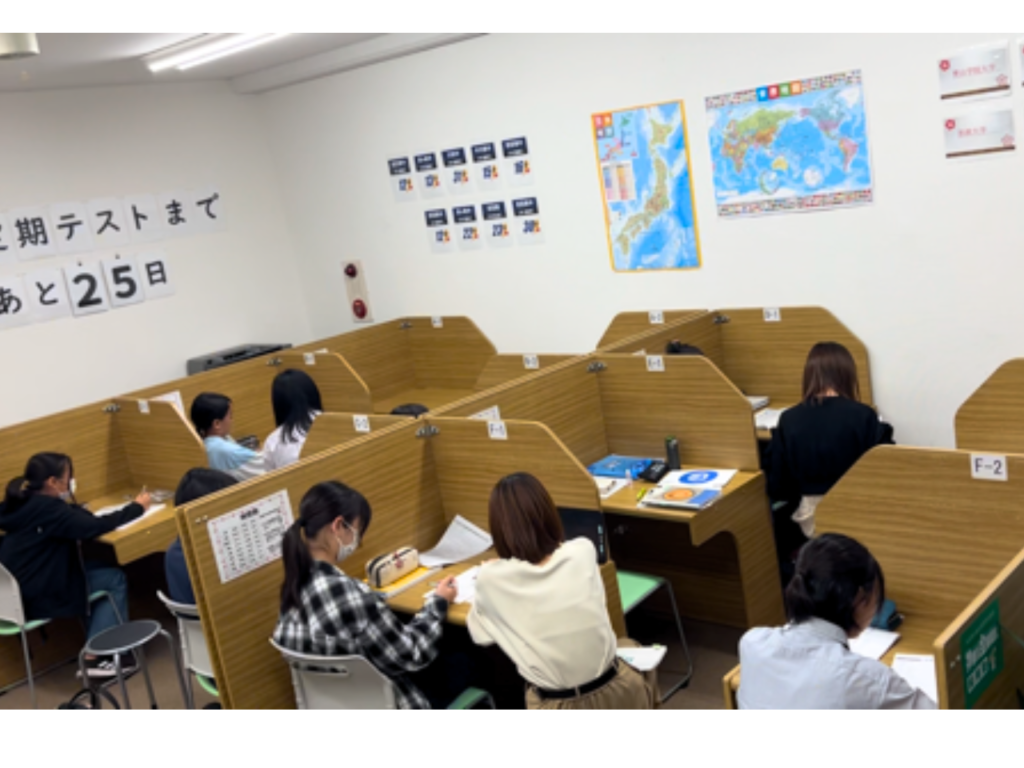 センター南校では、教室開放時間内であればいつでも無料で自習スペースを開放しております。空き状況は日によって異なりますので、詳しくはお電話でお問い合わせください。