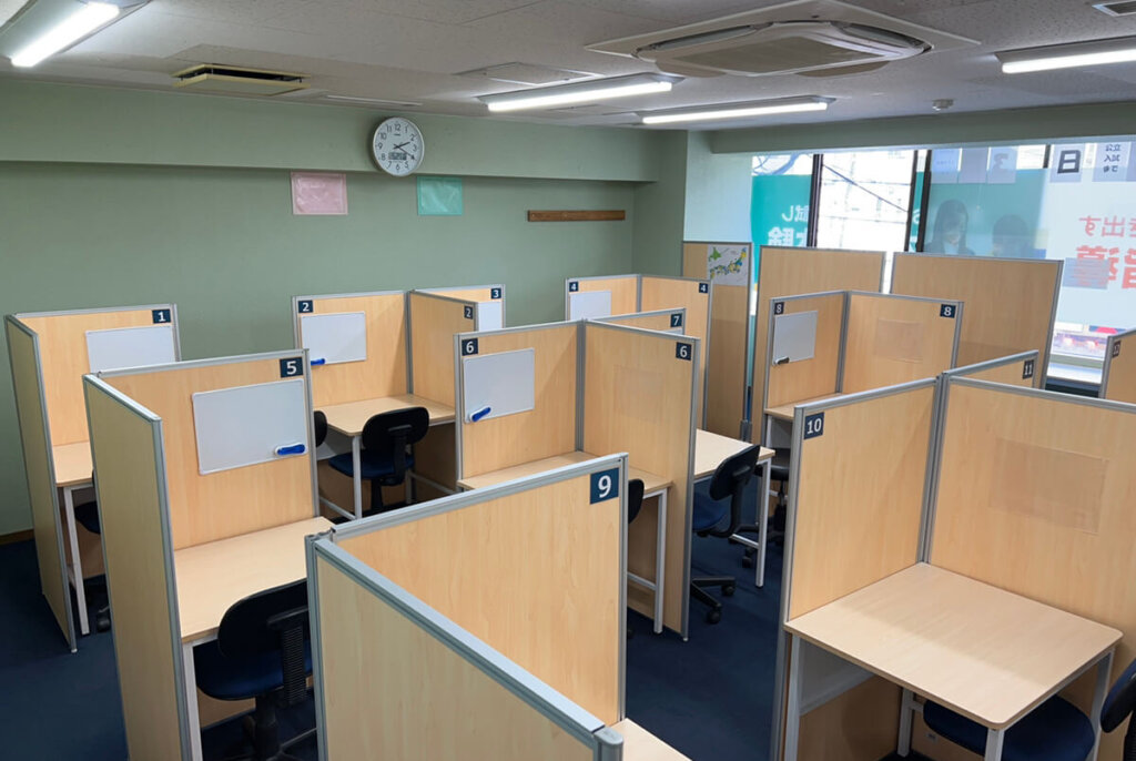 授業環境 ブース内で集中して勉強することができます。すぐそばに先生がいるので、わからないことがあれば都度質問することができます。