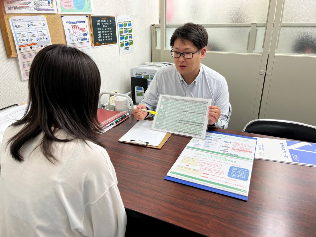 国公立大学受験では、高3夏までに全科目全範囲学習の修了、夏の共通テスト過去問対策、秋からの志望校別対策の流れで学習を進めていきます。私立大学受験では受験科目に照準を合わせ、高3秋からは受験校の過去問で対策を行っていきます。また、推薦入試の対策や面接練習・小論文対策も対応しております。