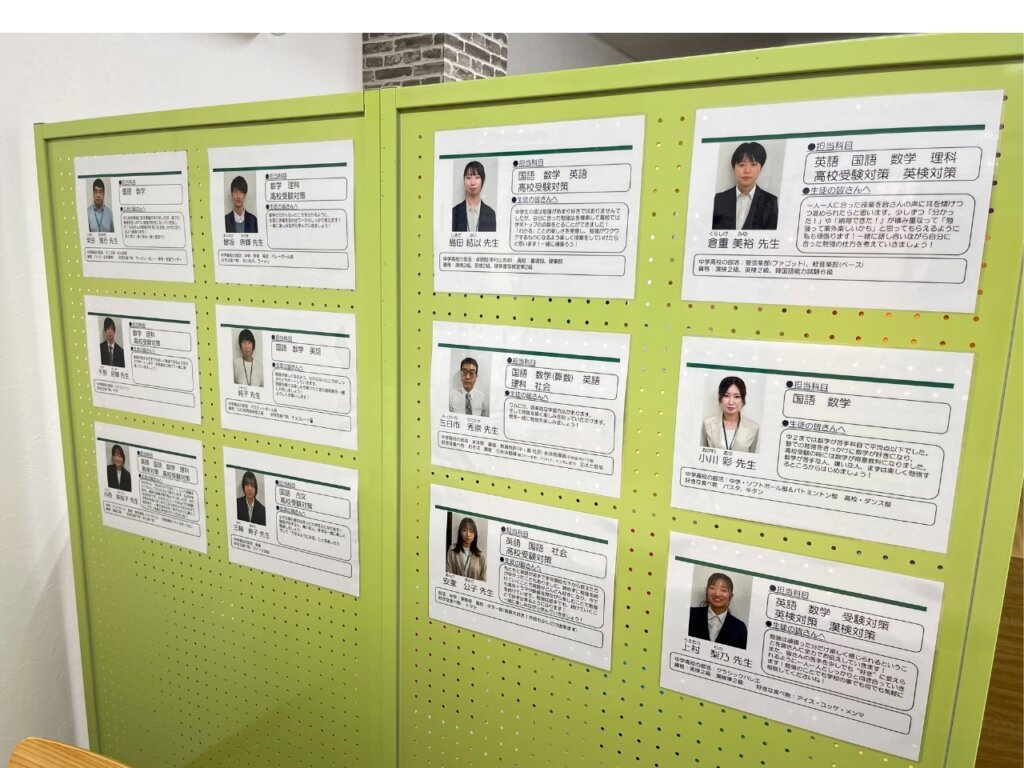 東村山久米川校には、大学生や社会人など経歴、年齢ともバラエティに富んだ講師が在籍しています。