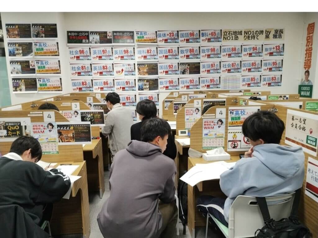 地域密着完全サポート!!初めて塾を選ぶときには悩むことが多いと思います。WAMでは、地域の学校、生徒さんの目的に合わせて、何をするべきか?一緒に考えてサポートをしています。