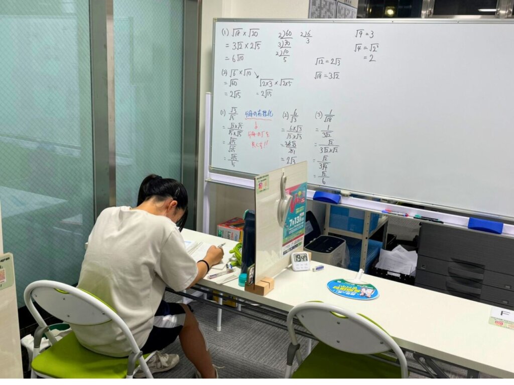 集団授業ではなく個別で指導してもらえるので、喜んで授業を受けている様子です。前週までにできなかった方程式の計算が、一人でできるようになっており、驚かされました!あとはさらに苦手な図形問題を克服してもらいたいと思います。