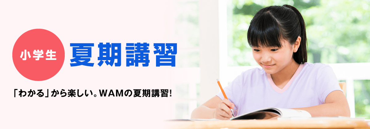 身につけるべきスキルが多岐にわたるため、何から始めればよいのか・・・どう教えればいいのか悩まれている保護者様も多いのではないでしょうか。 WAMが対話式・コーチング式の個別指導と個別カリキュラムに拘る理由もここにあります。WAMでは保護者様のご要望を第一に考え、そのご要望を満たすための最短かつ最善の学習カリキュラムを生徒さんごとに作成する専門チームがいます。『最も効率の良い学習が出来る環境があるかどうか』で夏の勝負が決まります。専門知識を持ったスペシャリスト達があなたをしっかりとサポートします!