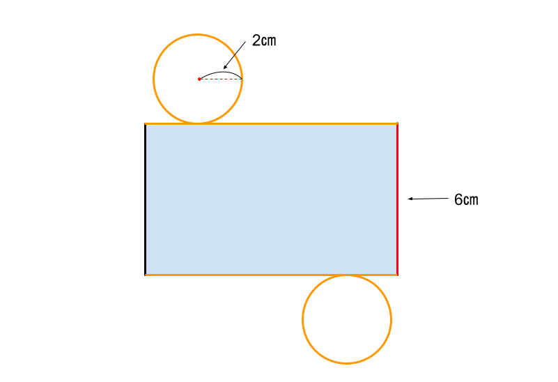 円周は、直径×円周率なので、円の直径4㎝×π=4π となり、四角形の横の長さが4πと分かりましたね。