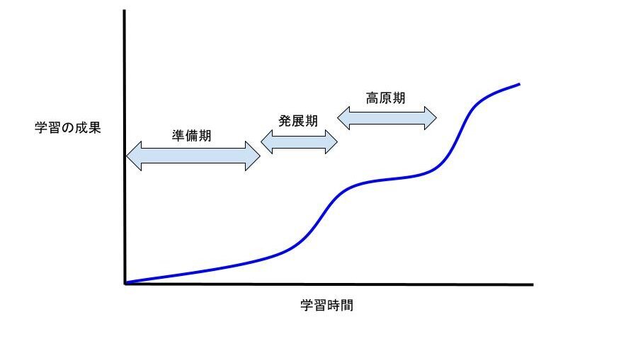 学習曲線には、「準備期」・「発展期」・「高原期」と呼ばれる3つのステージがあります。